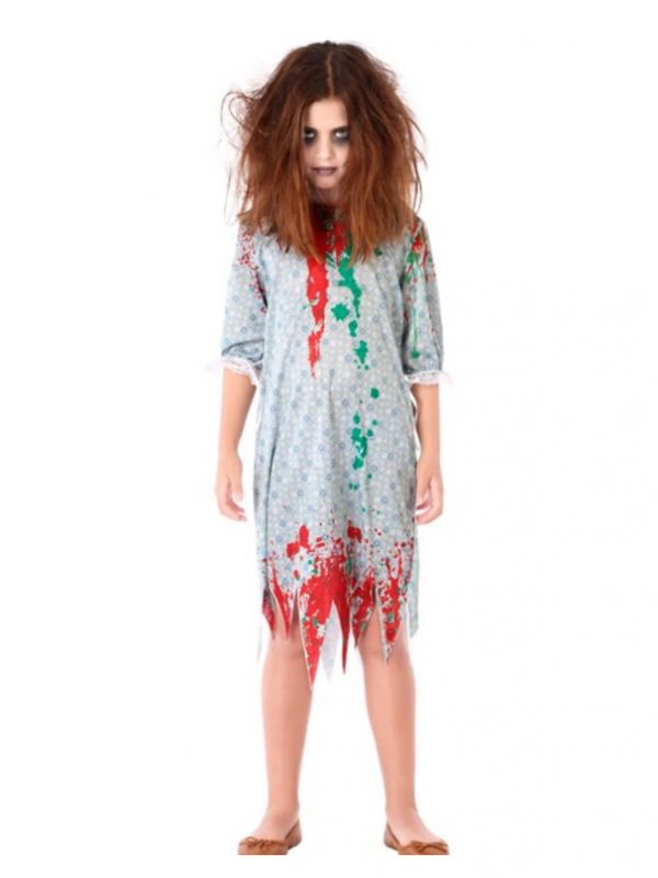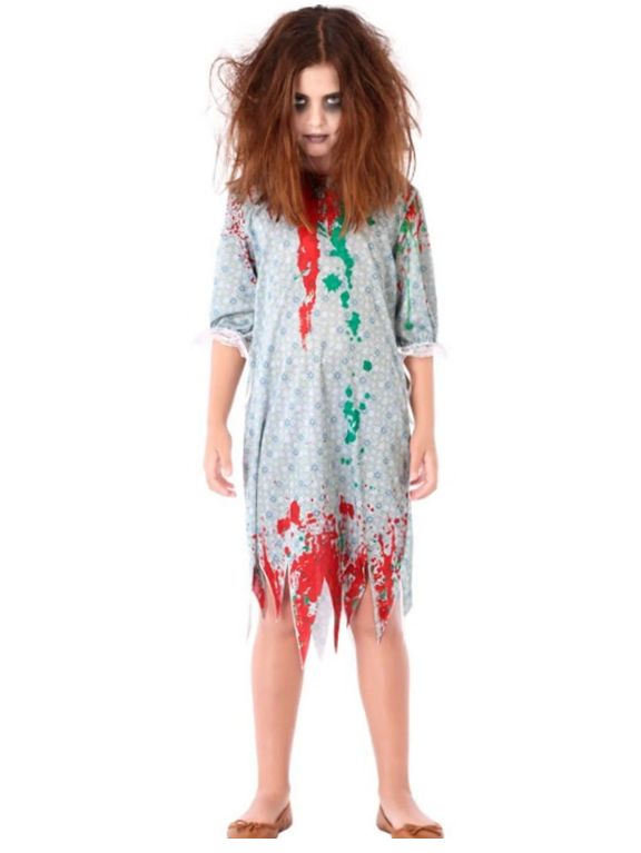 Disfraza a la niñas con este original disfraz de niña poseída, un disfraz para que las niñas disfruten del día de halloween, ideal para pedir caramelos y golosinas.