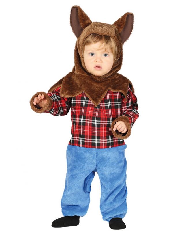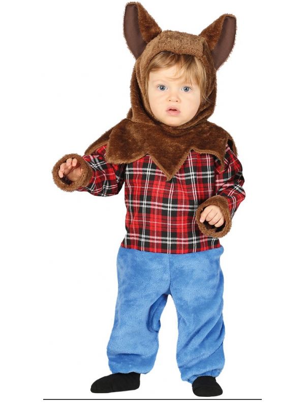 El disfraz de hombre lobo para bebe contiene capucha y mono.