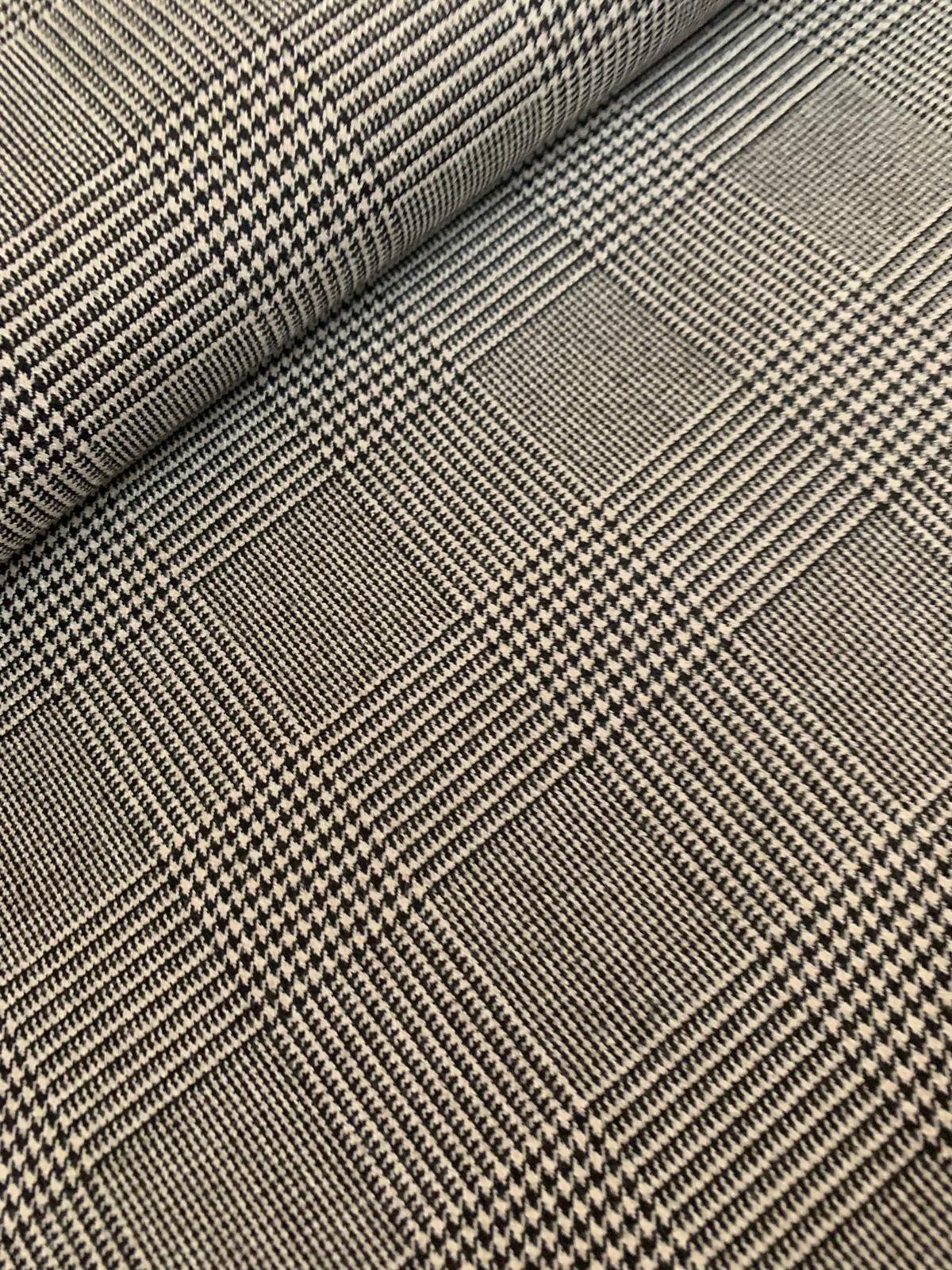 Príncipe de Gales ,es un tejido cuya estampación está formada por dos colores y a veces un tercero como perfil. Son grandes cuadros ,combinado con un denominado mil rayas y a la vez pequeños cuadros llamados pata de gallo.Elástico, fácil coser.