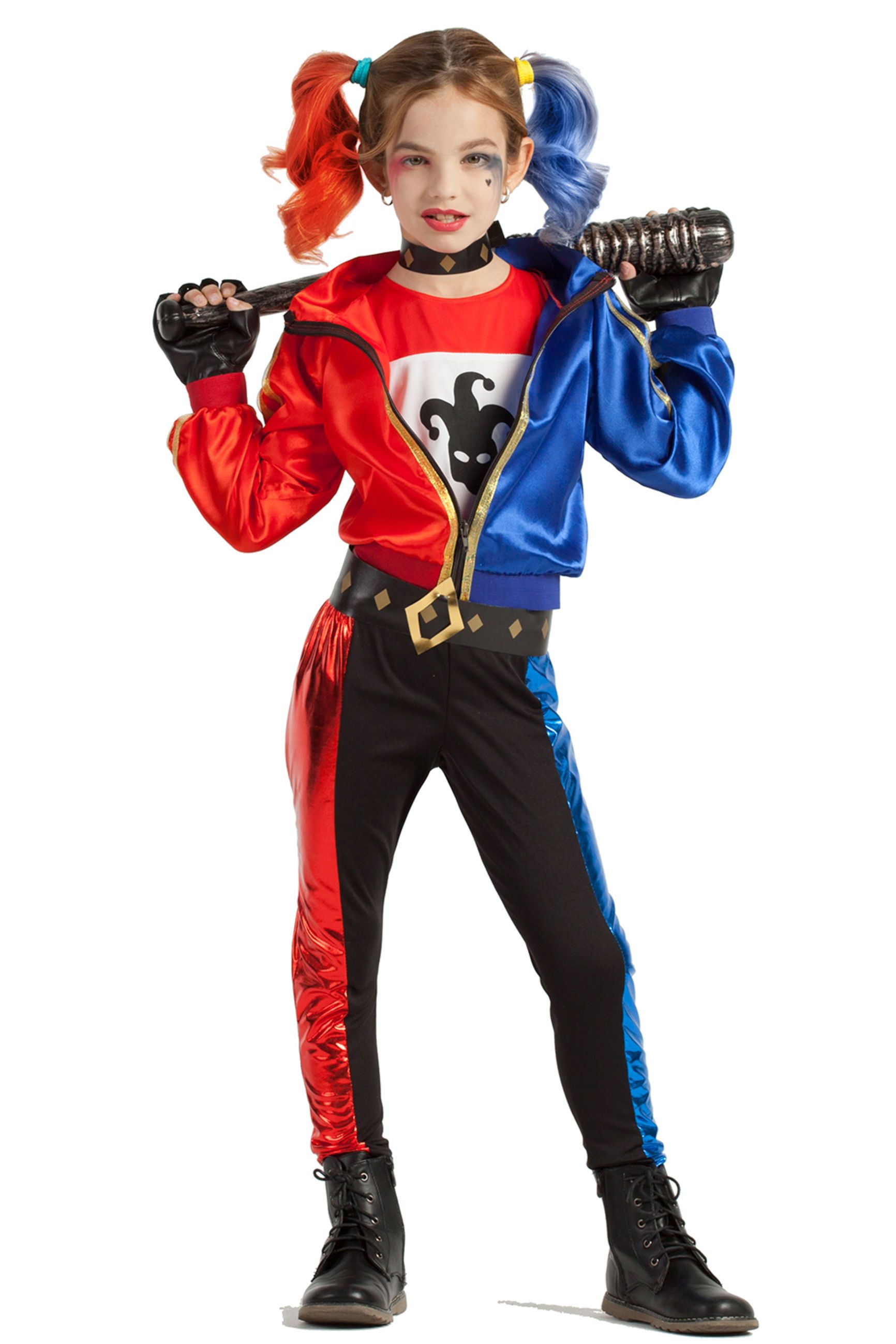 El disfraz de payasa harley contiene pantalón, chaqueta, gargantilla y cinturón, Un disfraz original para niña para carnaval.