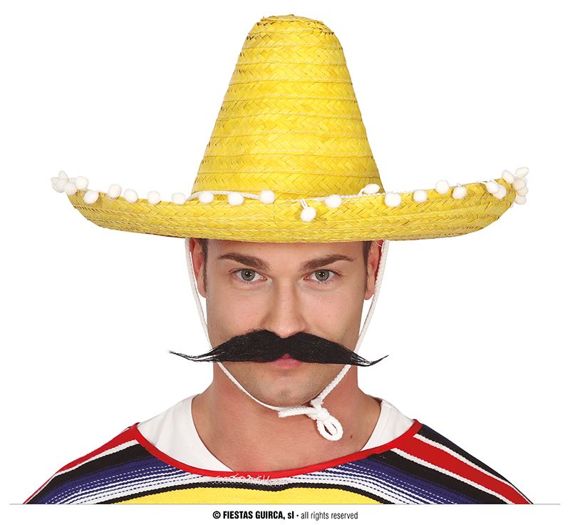 Complementa tu disfraz de Mexicano con este sombrero de color amarillo para tu disfraz de mexicano, ideal para que no te falte detalle en tus disfraces de mexicano. El tamaño del sombrero puede servir tanto para adulto como para niños grandes.
