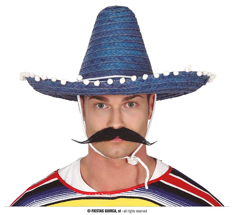 Complementa tu disfraz de Mexicano con este sombrero azul para tu disfraz de mexicano. Un complemento que no te puede faltar en tu disfraz de mexicano, un sombrero ideal para adulto y para niños grandes.