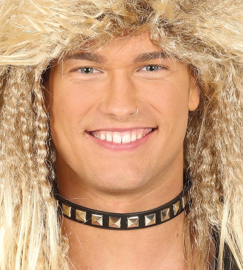 El collar punki negro contiene un collar negro cn tachuelas. Ideal para complementar tu disfraz de Punki.
