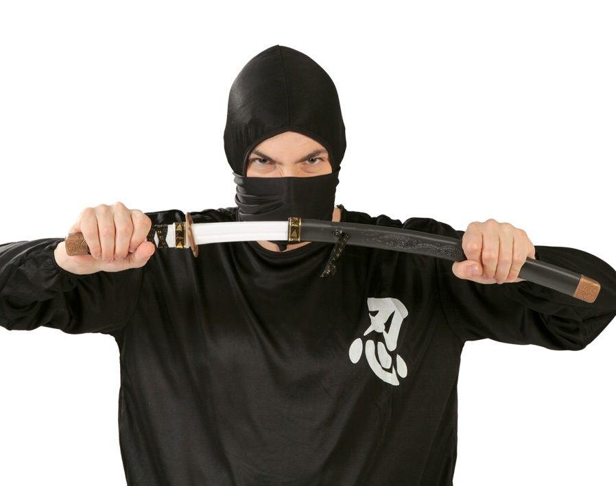 Complementos para tu disfraz de Ninja, accesorio para complementar tu disfraces de ninja. Para tu disfraz de tortuga ninja. Un espada de ninja de plástico.