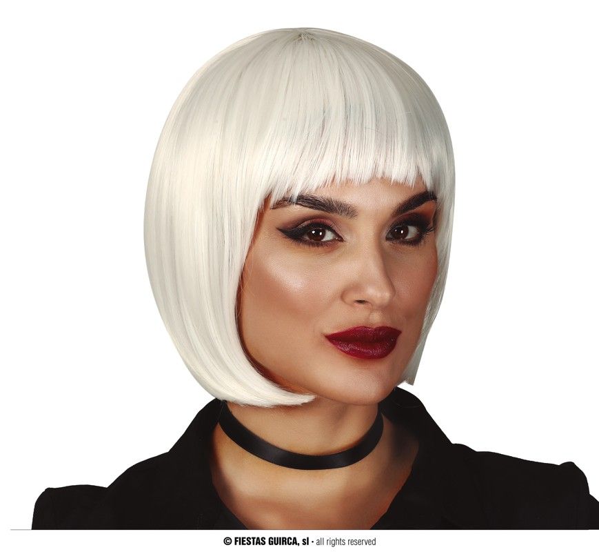 La peluca blanca media melana contiene una peluca de calidad para complementar tu disfraces para carnaval.