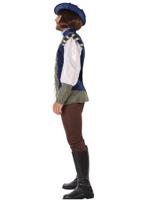 El disfraz de señor medieval contiene boina, pantalón y camisa con chaleco. Un disfraz muy completo para la época medieval.