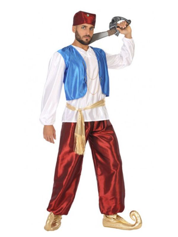 Disfrazate con este disfraz de principe aladín, un disfraz elegante y cómodo para disfrazarte para carnaval. Un disfraz de calidad para disfrazarte en grupo o en pareja para las fiestas de disfraces.
