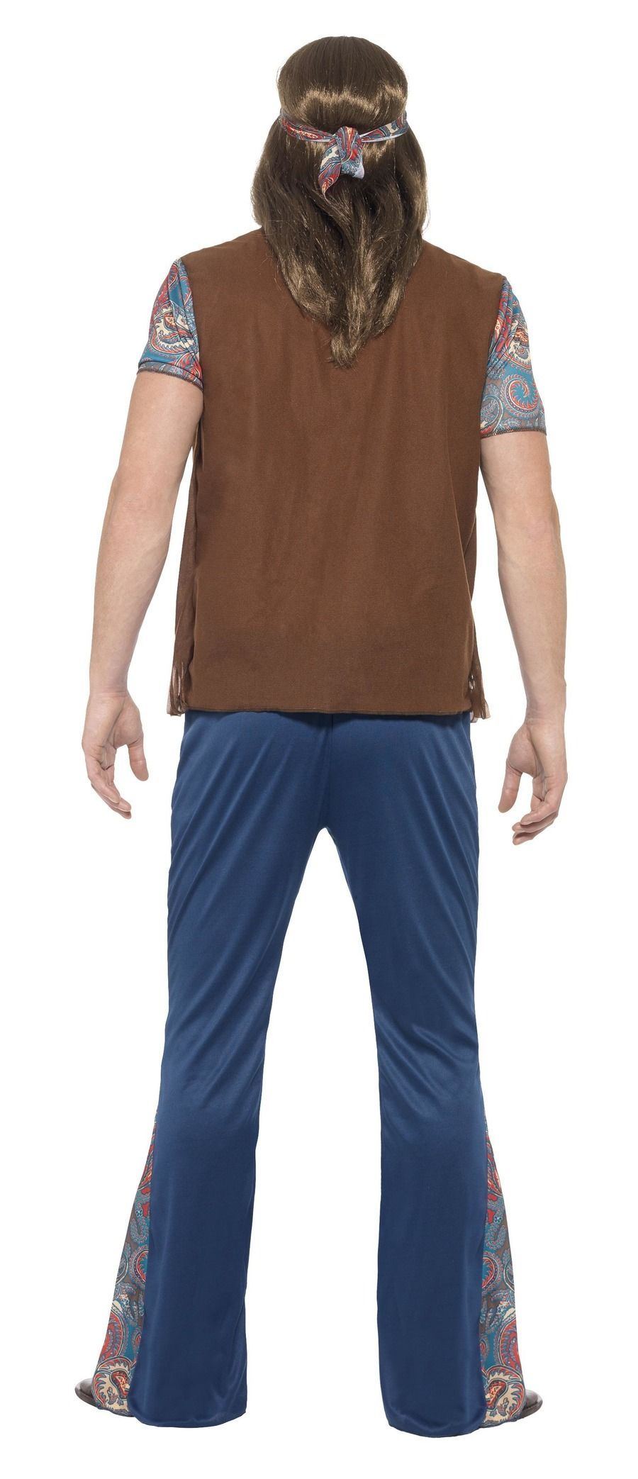 El disfraz de Hippie para hombre contiene pantalón, camisa con chaleco, cinta de la cabeza y colgante hippie.