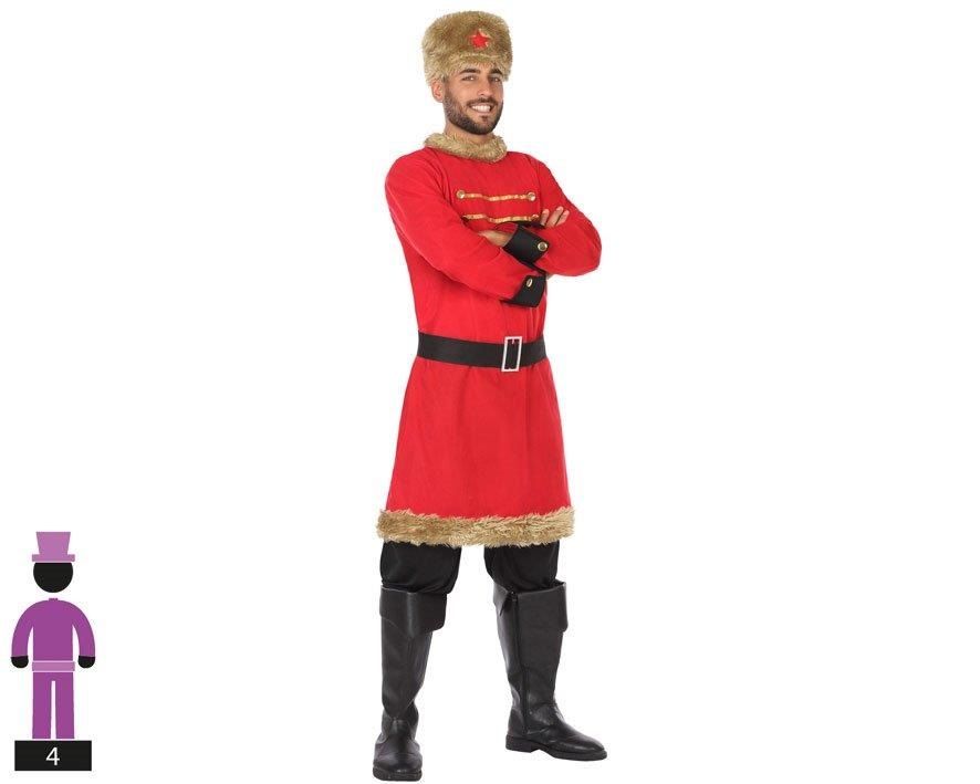 El disfraz de Ruso contiene pantalón, chaqueta, cinturón y sombrero de ruso