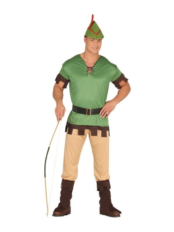Un disfraz tradicional para disfrazarte en la fiesta de disfraces, el disfraz de arquero para hombre, un disfraz cómodo y diferente, te sirve para disfrazarte en la feria medieval o bien para representar un cuento.