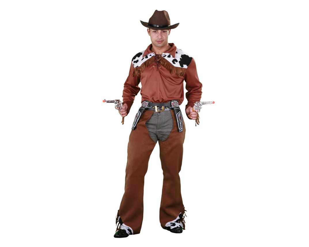El disfraz esta formado por zahones, camisa, cinturon sin pistoleras