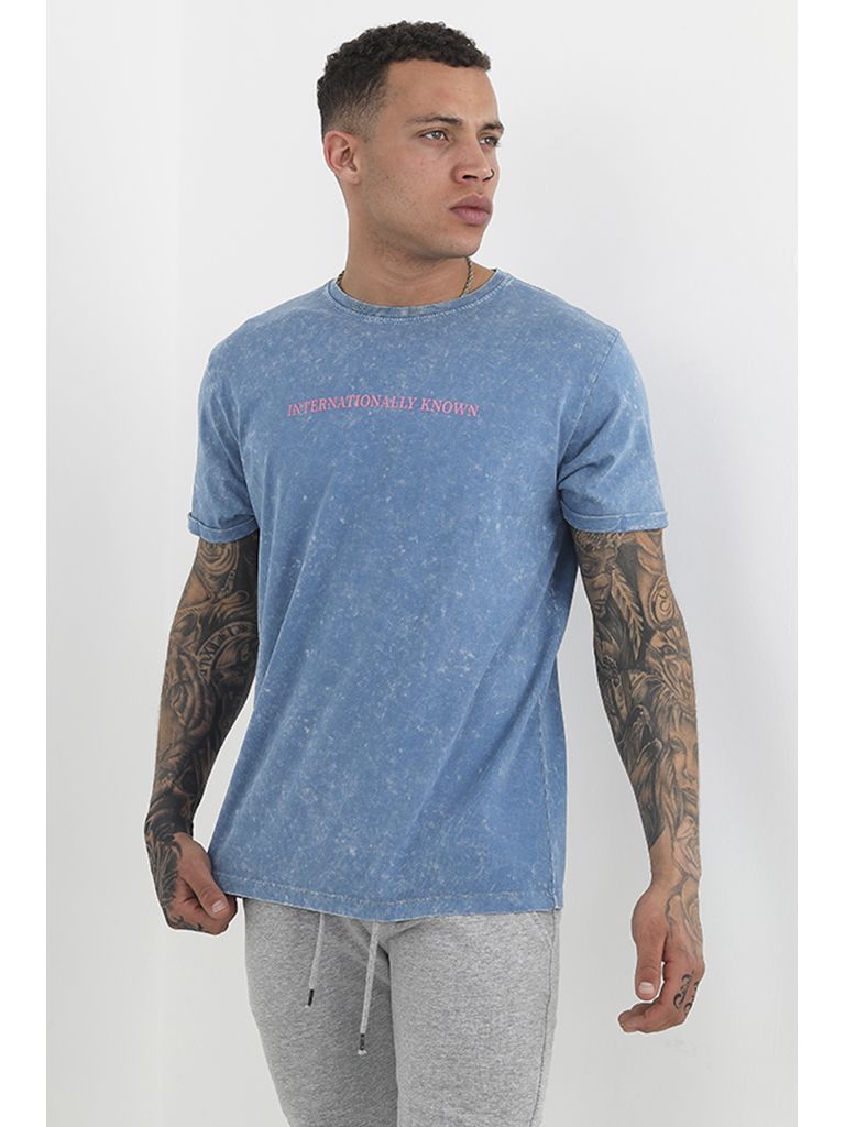 Camiseta de cuello caja lavada al acido con print en el pecho. Manga corta.br / br / 100% Algodón.