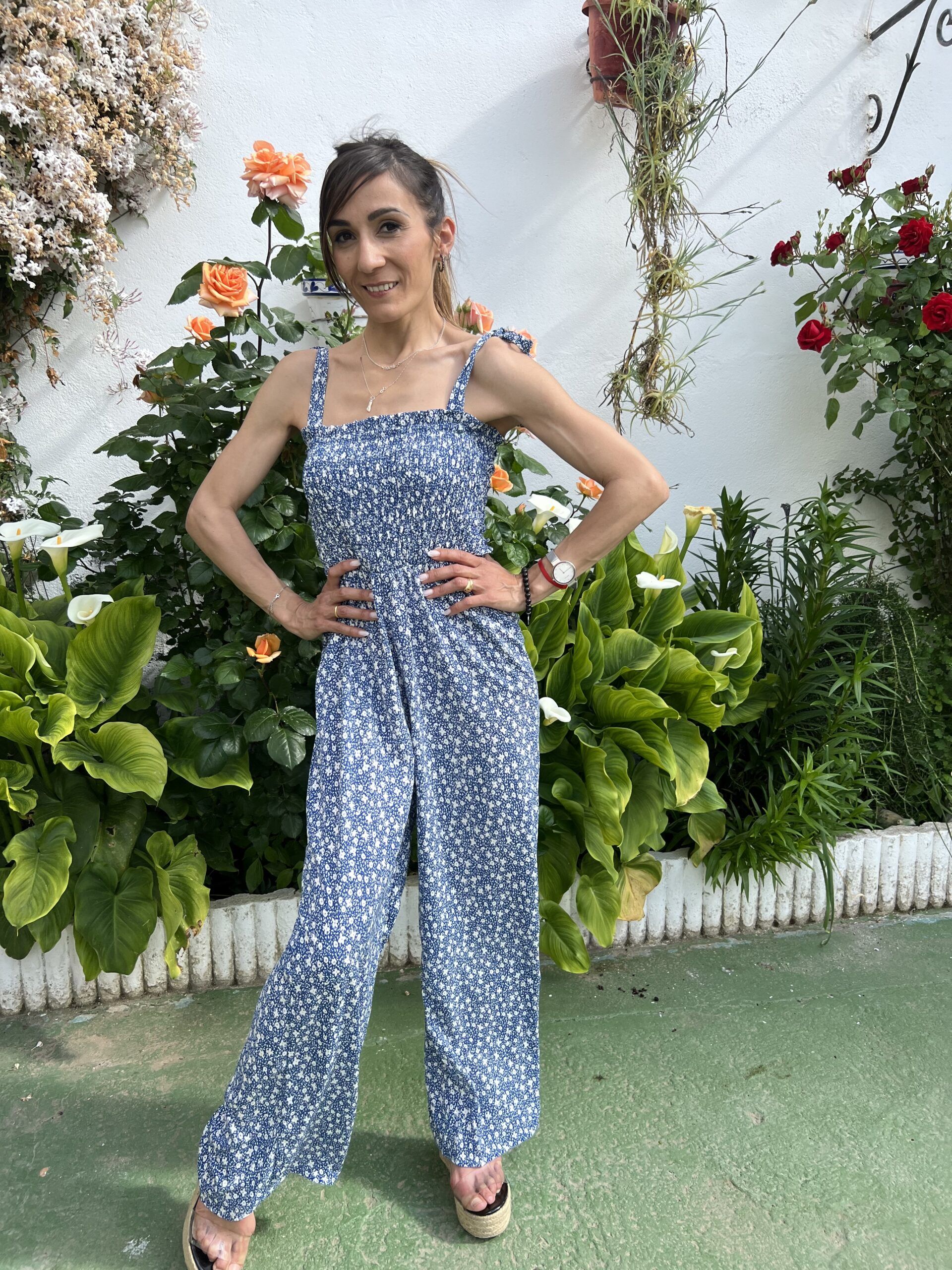 Jumpsuit estampado de tirantes regulables. Cuerpo en nido de abeja. Bolsillos laterales. Pernera ancha.br / br / Tala XS 36/38br / br / Talla S 40/42br / br / Talla M 44/46br / br / Talla L 46/48