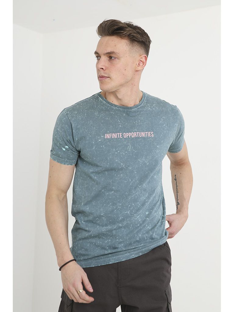 Camiseta de cuello caja lavada al acido con print en el pecho. Manga corta.br / br / 100% Algodón.