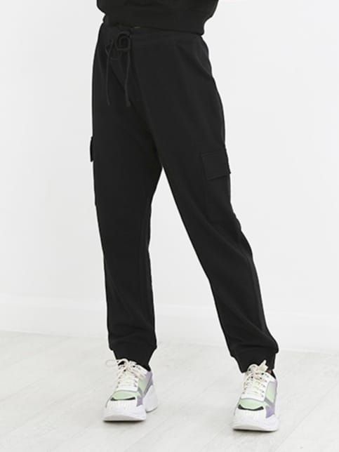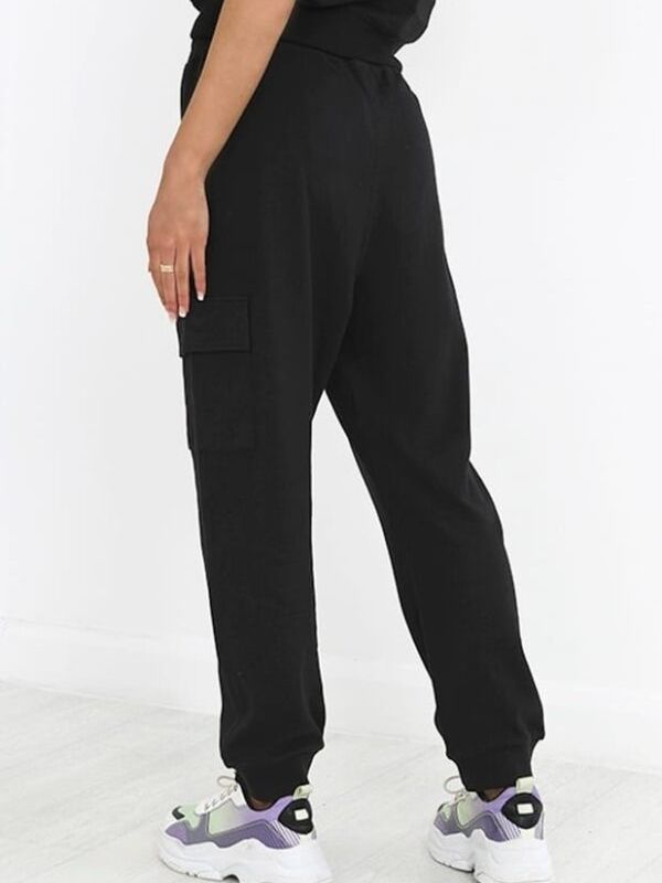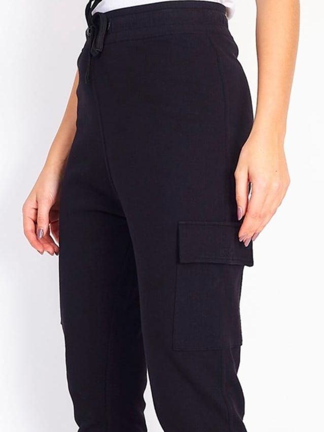 Pantalón de tiro alto Con cintura engomada regulable con cordón. Bolsillos cargo en los laterales. Bajo en puño.br / br / 80% Algodónbr / br / 20% Poliester.
