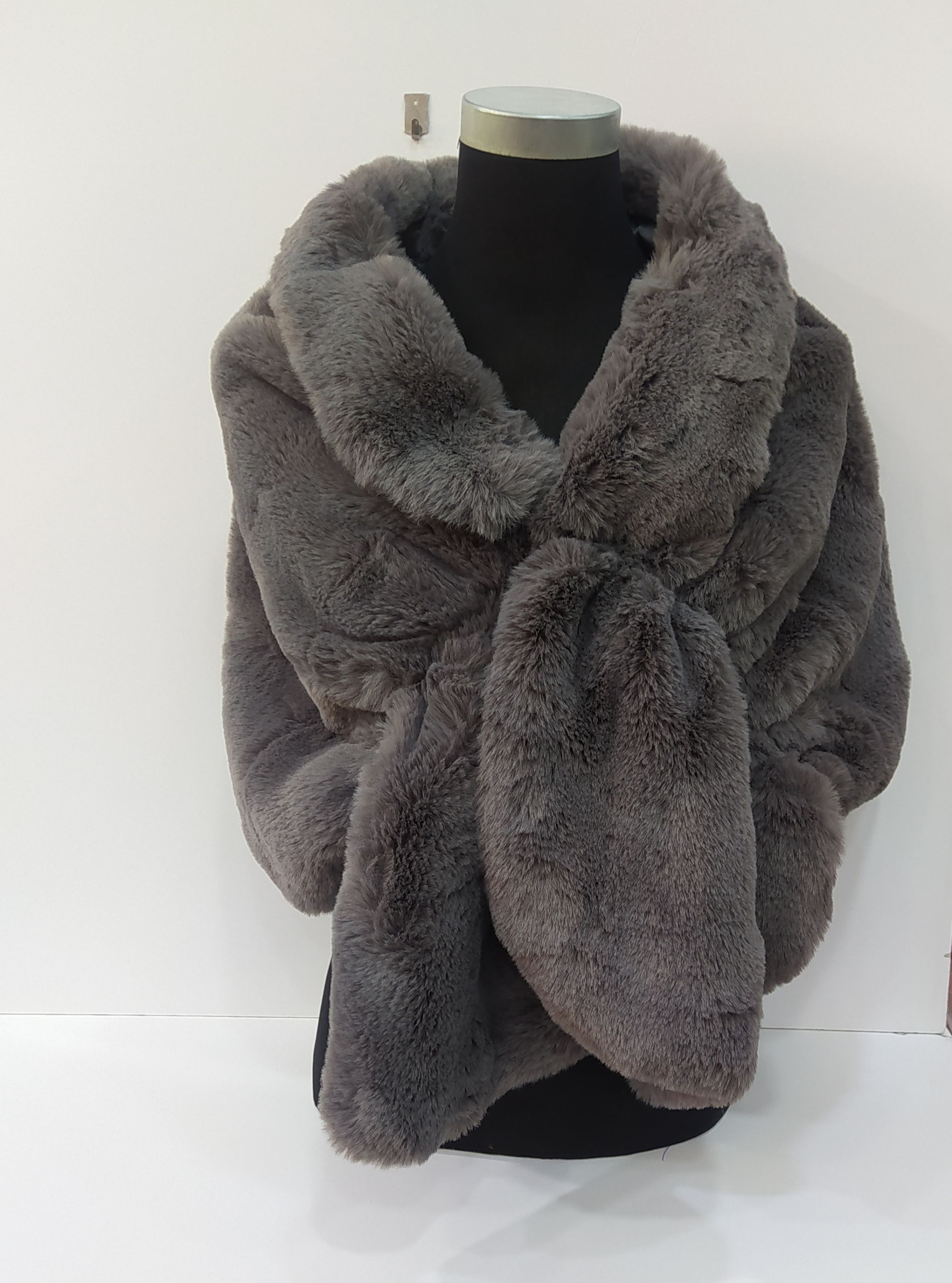 Estolas de pelo sintetico gris oscuro, con cuello y caidas Cierre de peleteria con forro del mismo tono