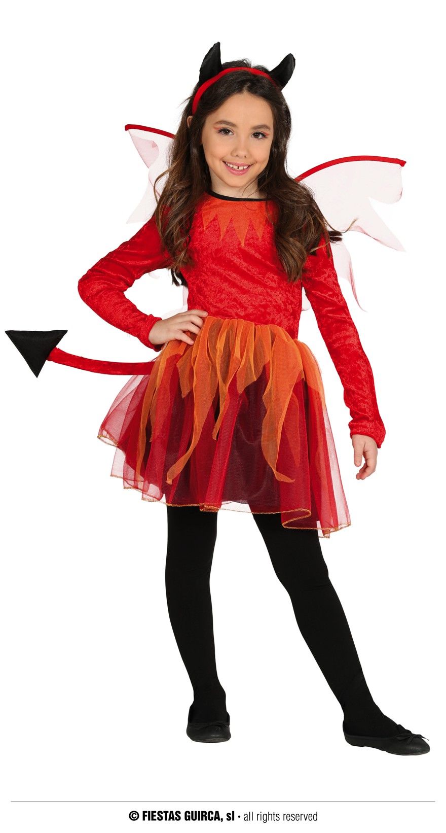 El disfraz de diabla infantil contiene Diadema, vestido, alas, cola