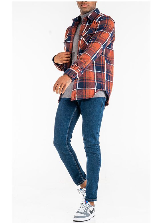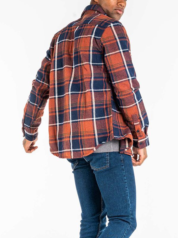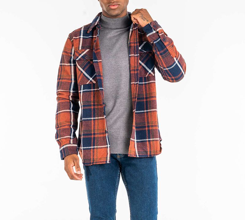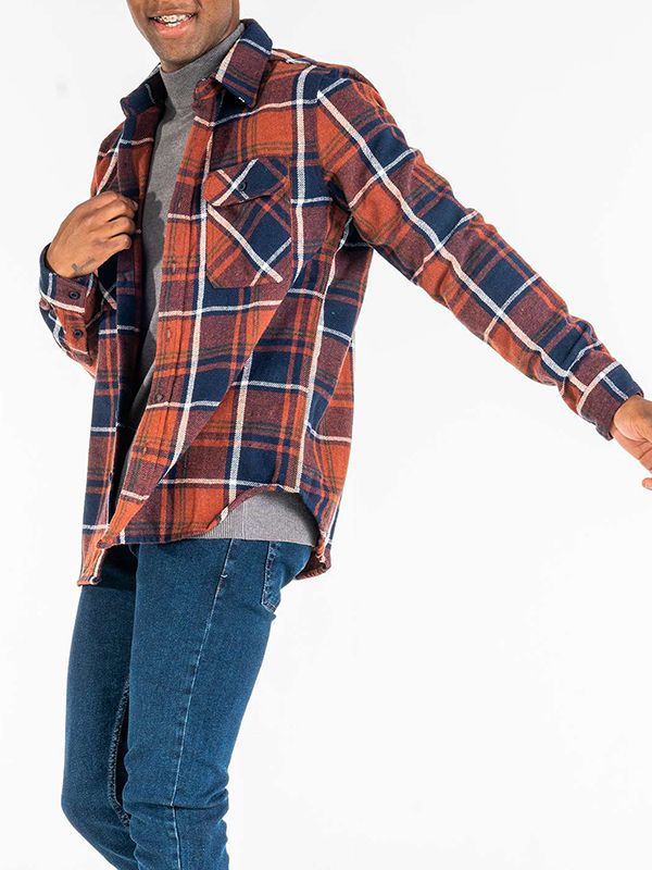 Sobrecamisa de cuadros con tejido de paño, bolsillos delanteros en la parte del pecho y cuello y puños de camisa.