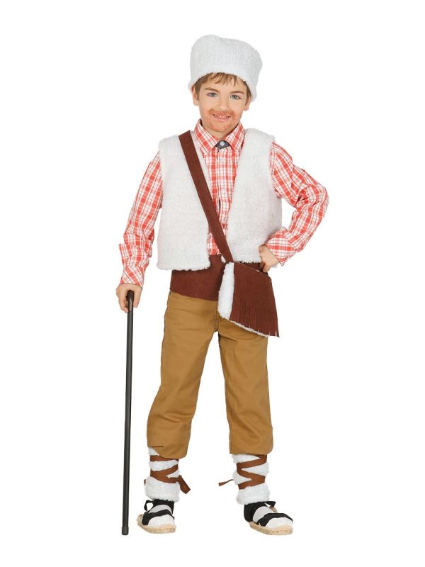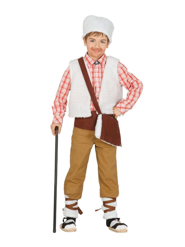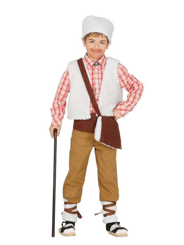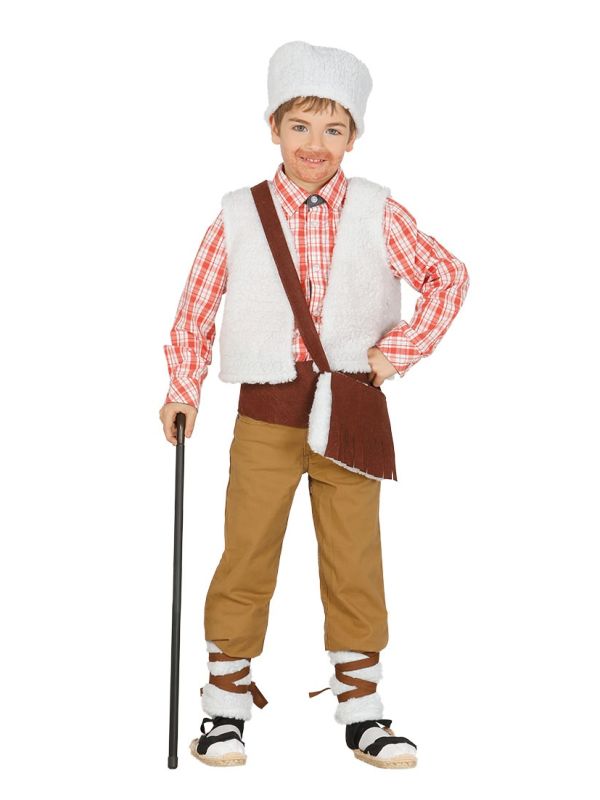 El disfraz de pastor contiene chaleco, sombrero, zurrón, fajín y polainas.