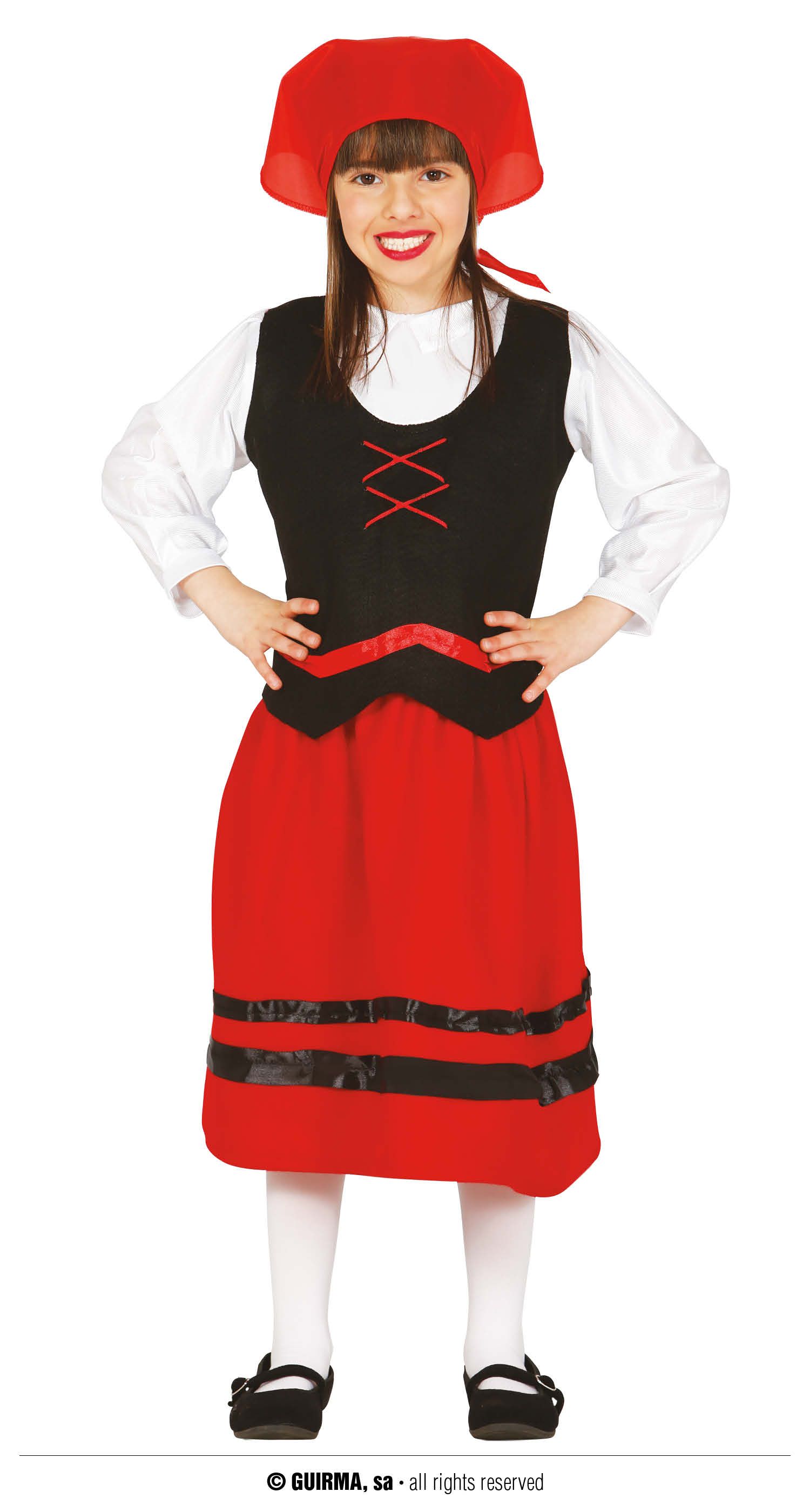 El disfraz de pastora contiene falda, camisa con chaleco y pañuelo.