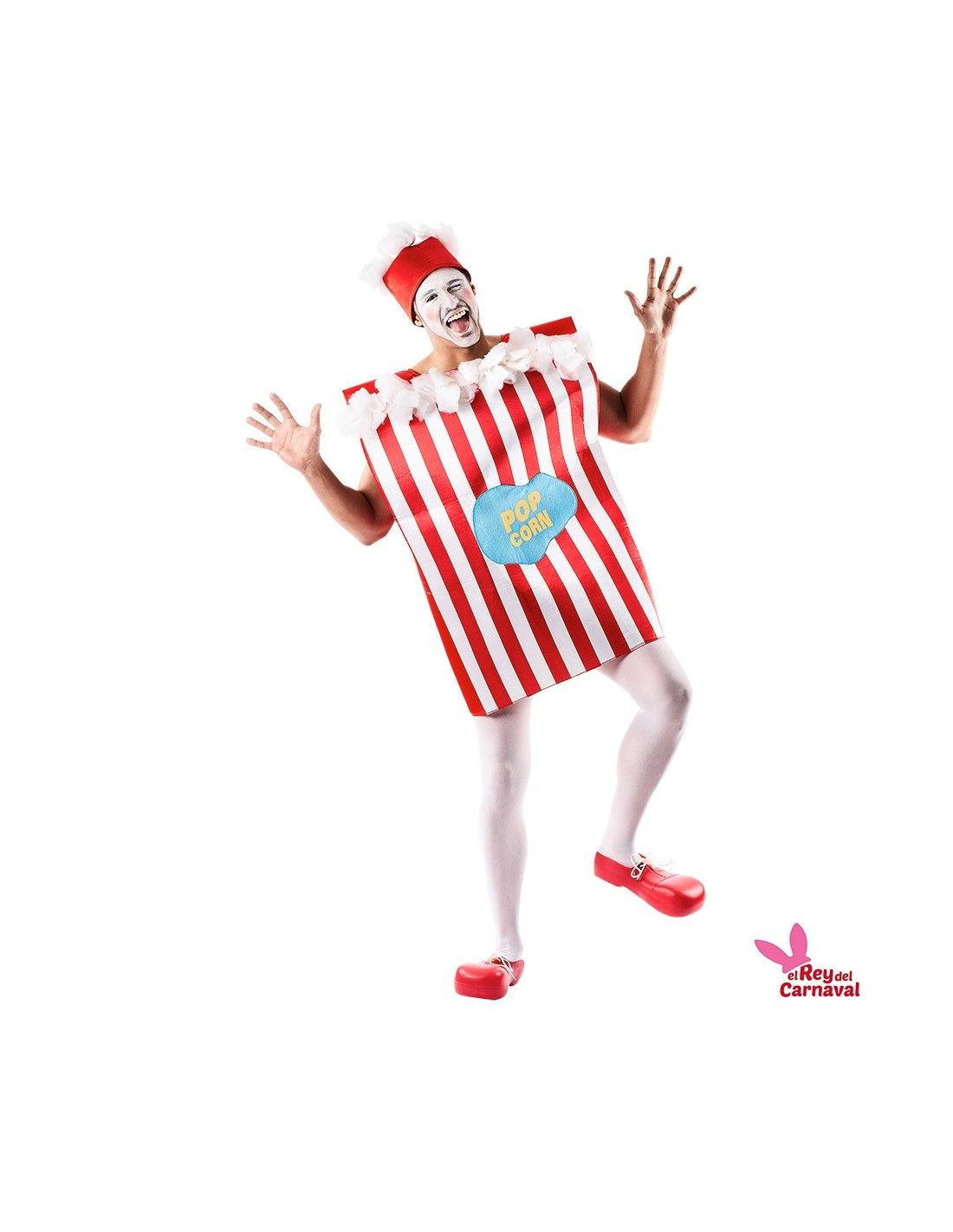 El disfraz de Caja de palomitas contiene caja de palomitas y gorro.