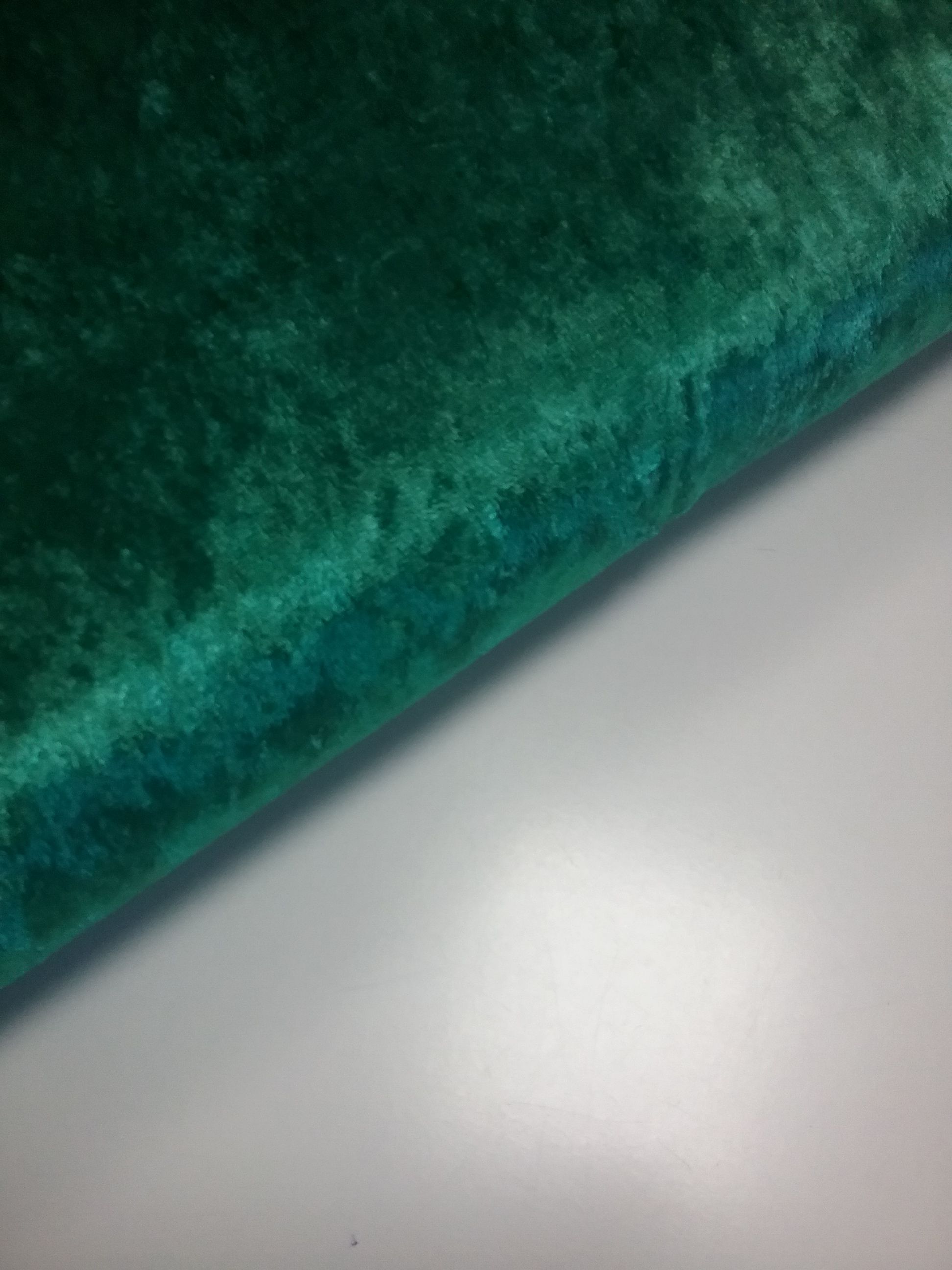 El tejido de terciopelo martele es flexible, brillante, suave, elástico a lo ancho y muy fluido con una gran caída. Tiene unos pelos cortos que van en una sola dirección, lo que da un efecto brillante, hace aguas por eso podemos ver varias tonalidades. No se arruga.