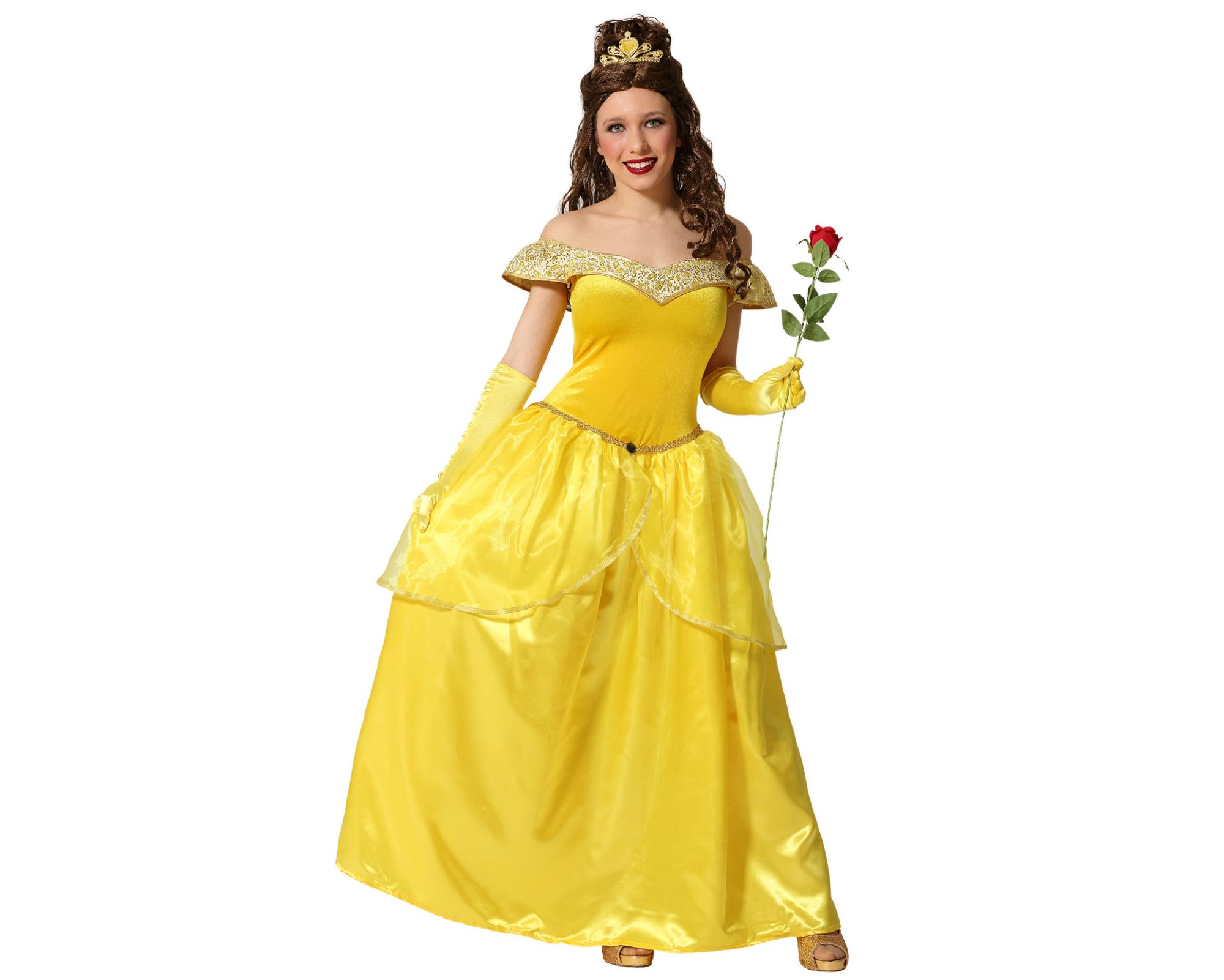 Disfrazate con este elegante disfraz de Princesa Amarilla, un disfraz para convertirte en una princesa de cuento, ideal para tus fiestas de disfraces.