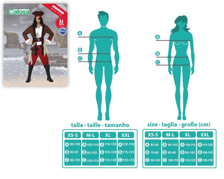 Disfrázate con este original disfraz de pirata para hombre, disfraz de pirata cómodo y elegante para disfrazarte en tus fiesta de disfraces más divertidas y originales.