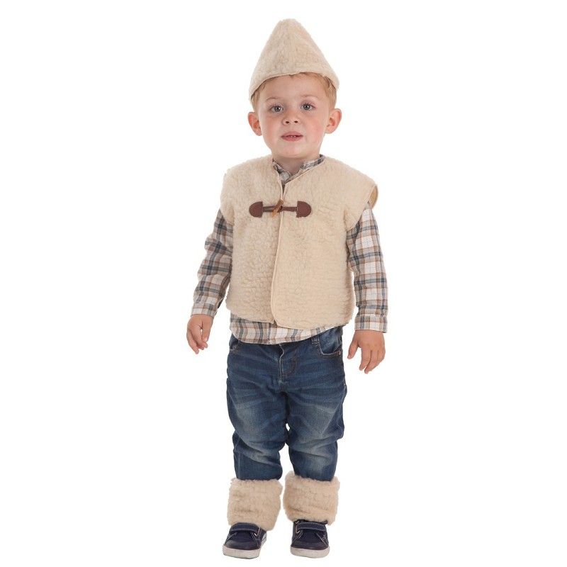 El disfraz de pastor contiene chaleco, polainas y gorro.