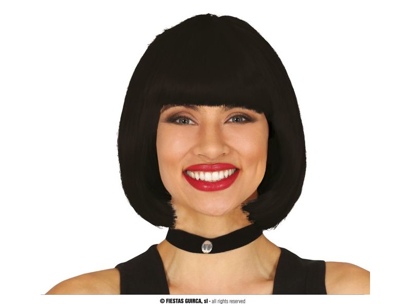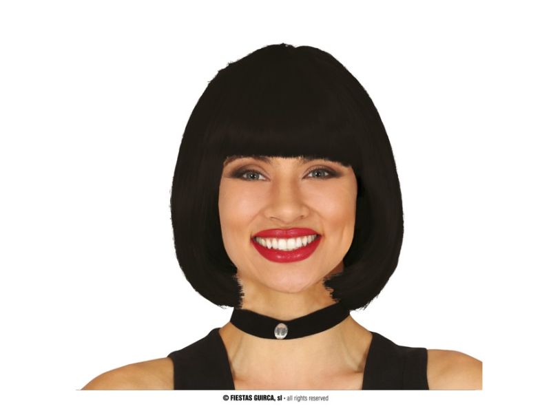 La peluca melena negra contiene una peluca negra de pelo corto.