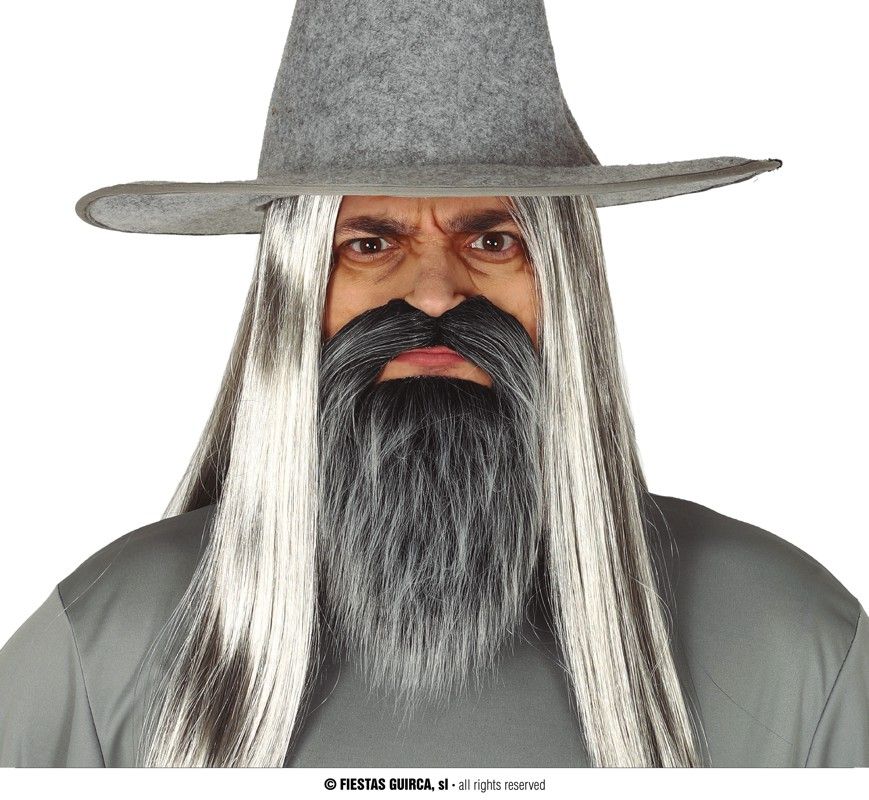 La barba y bigote gris contiene una barba y bigote para complementar tus disfraces