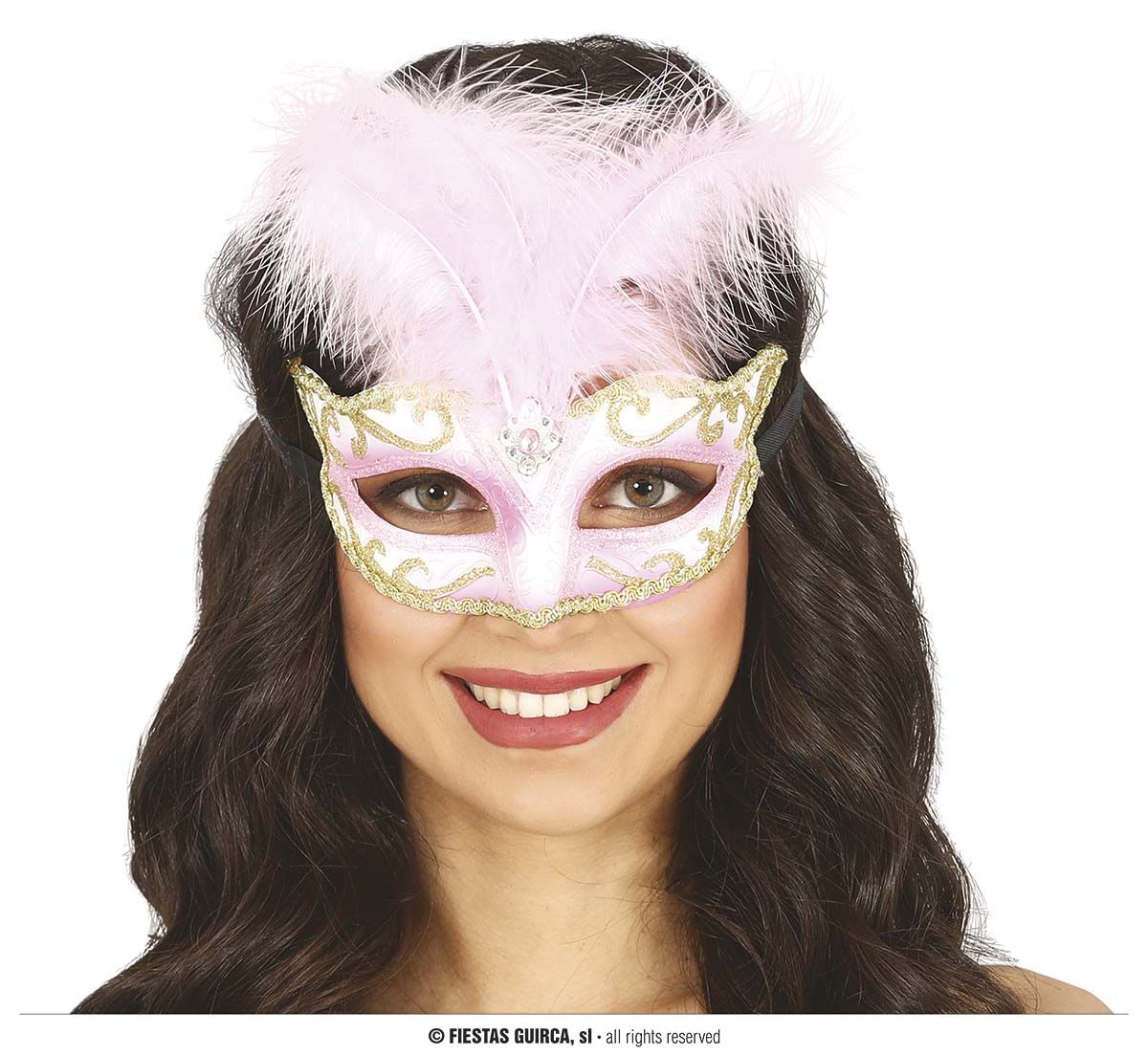 El antifaz rosa contiene un antifaz rosa con pluma