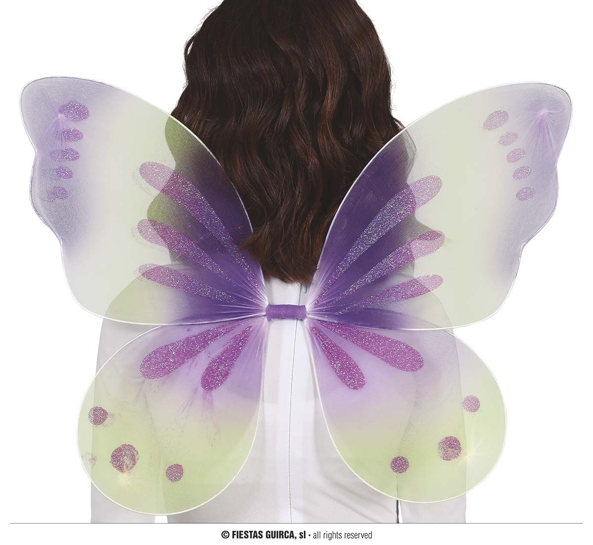 Las alas de mariposa contiene unas alas de color lila y verde para complementar los disfraces
