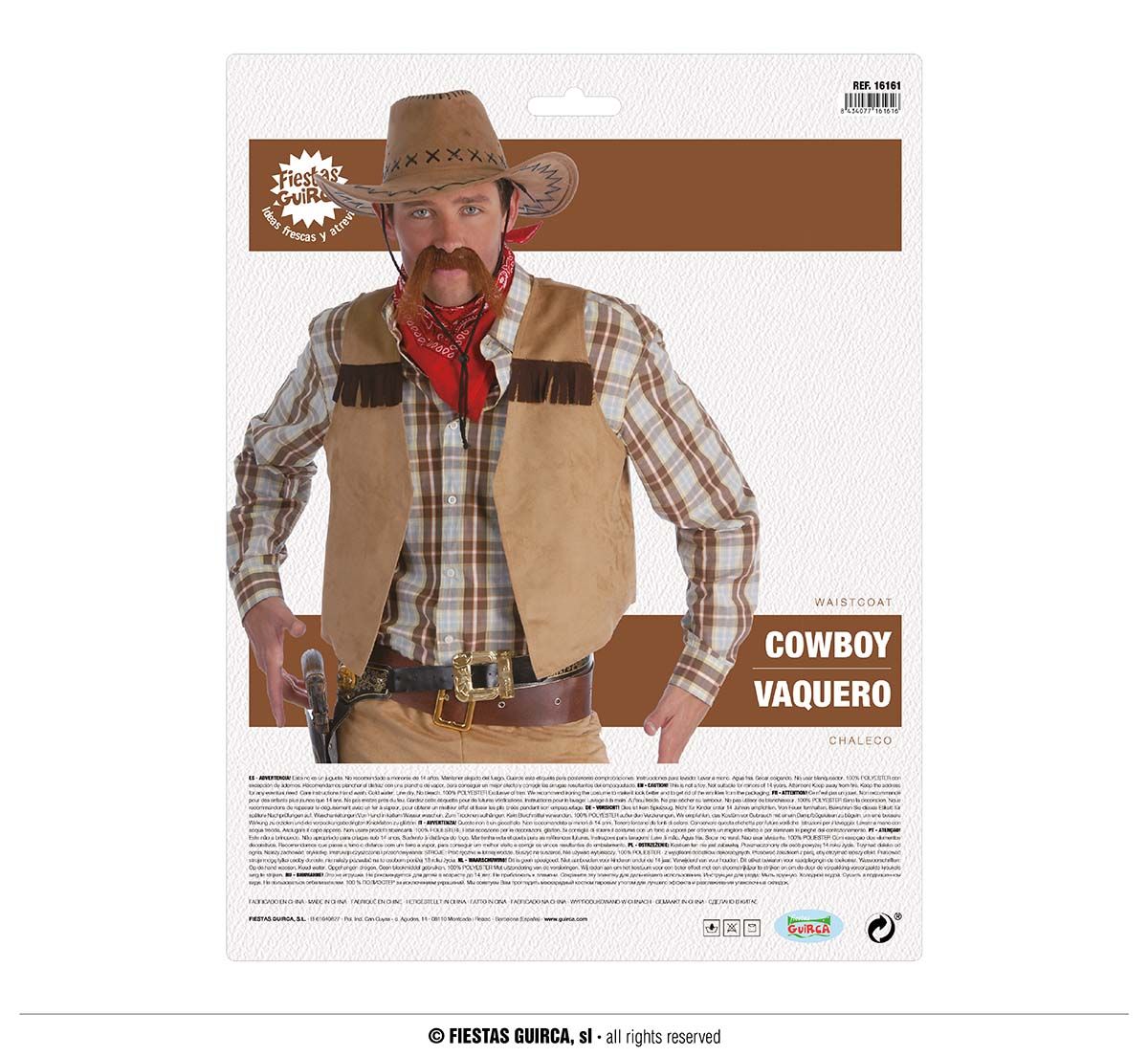 Una manera sencilla de disfrazarte con este complemento del disfraz, un chaleco vaquero para ser un gran vaquero con tu chaleco y tu sombrero. Un chaleco que también te puede servir para disfrazarte de Indio.