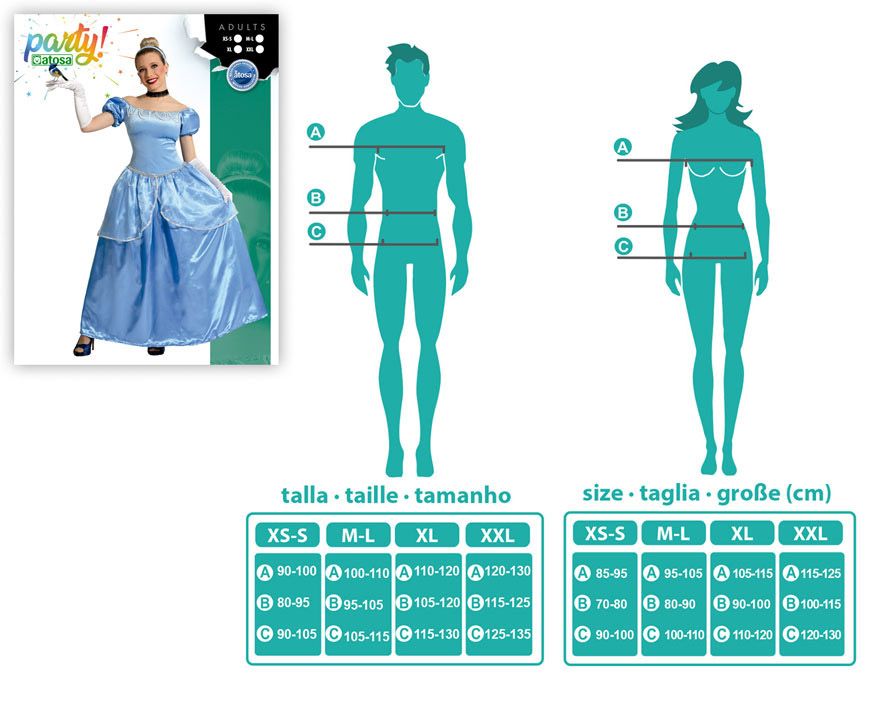 El disfraz de princesa azul contiene vestido. No incluye guantes.