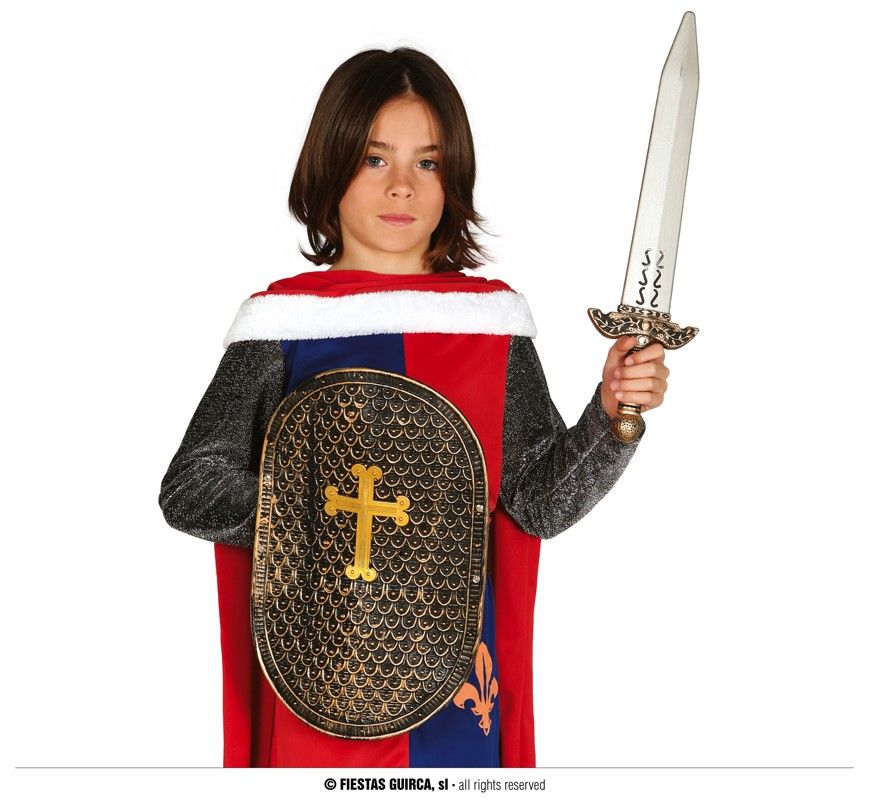 Complementa tu disfraz medieval con este escudo y espada medieval, un accesorio que no puede faltar en los disfraces medievales, un caballero no puede estar sin escudo ni espada, que mejor manera que llevarlo todo en un pack.