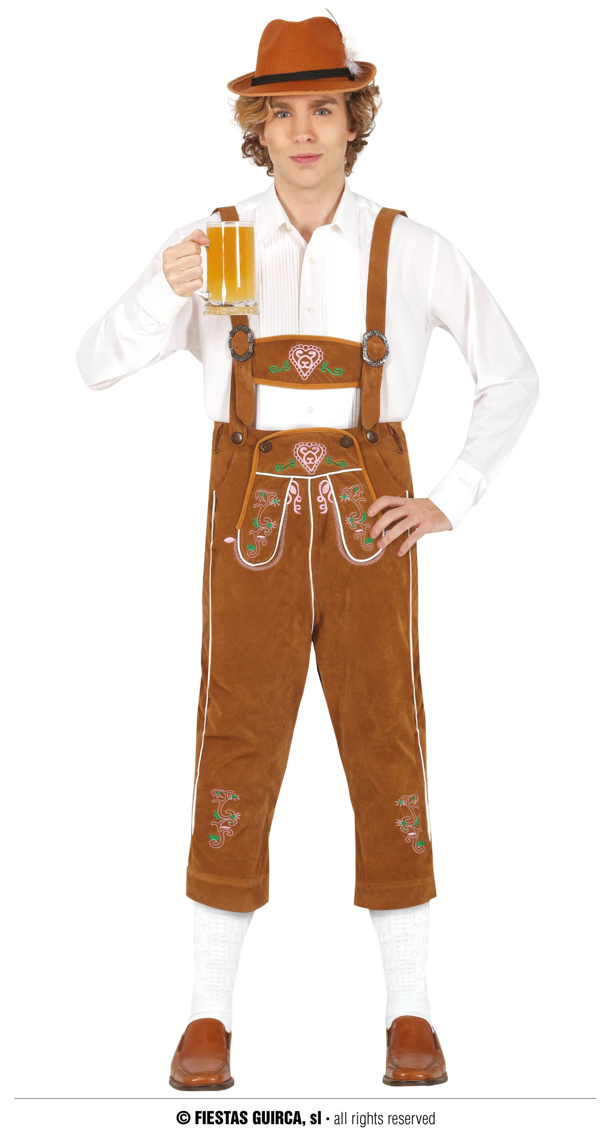 El disfraz de tirolés contiene un pantalones con tirantes, traje de calidad para ir disfrazado de una manera cómodo y elegante