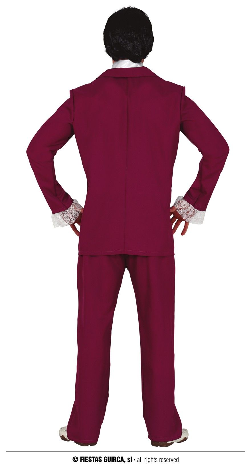 El disfraz de power contiene camisa con pechera, chaqueta y pantalón.