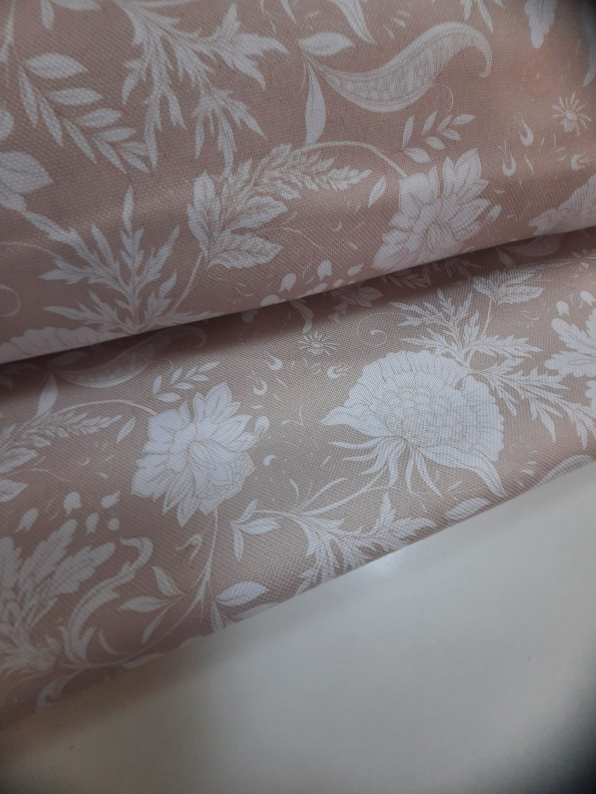 Tela TEFLÓN FONDO BEIS FLOR BLANCA