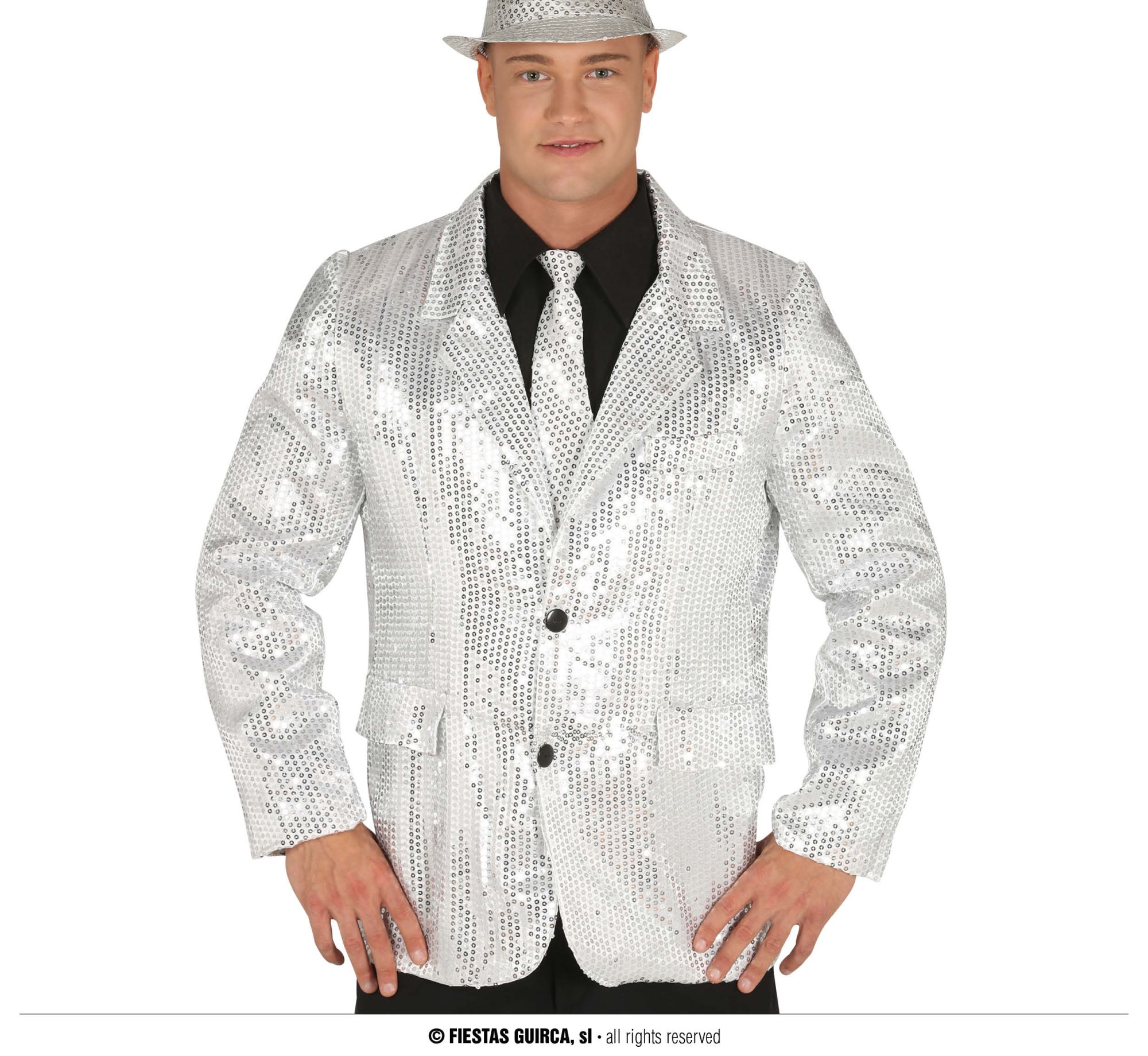 La chaqueta de lentejuelas plata contiene una chaqueta de lentejuelas plata para complementar tu disfraces para carnaval, un chaqueta de calidad para complementar tus disfraces para carnaval