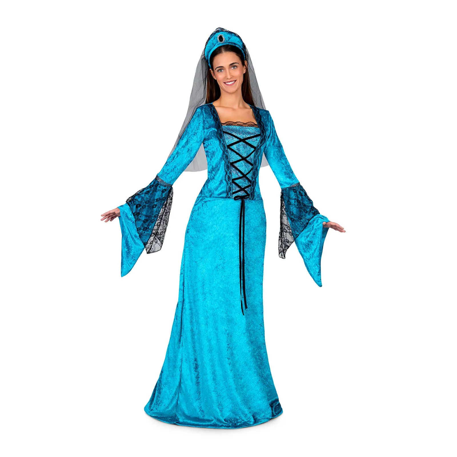 El disfraz de princesa medieval contiene vestido y tocado. Disfraces Medievales para Mujer
