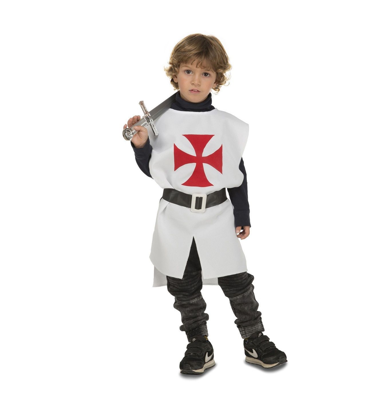 El disfraz de peto medieval contiene el peto de templario y el cinturón. Un disfraz muy cómodo para los niños.
