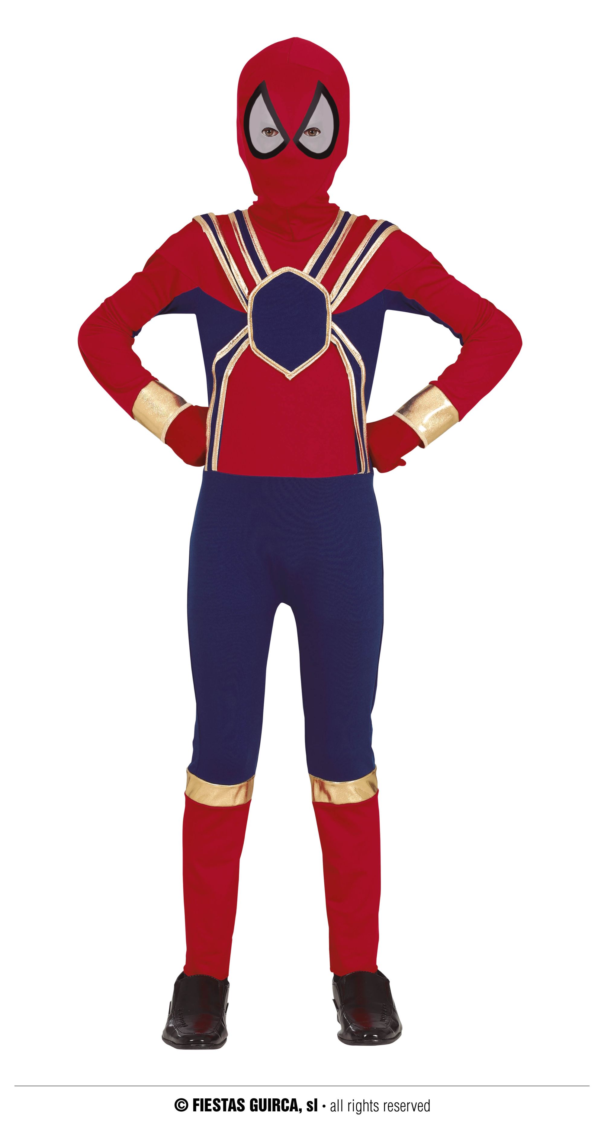 El disfraz de spider oro contiene mono y capucha. Disfraces de Superhéroes para niños, disfraces para carnaval.