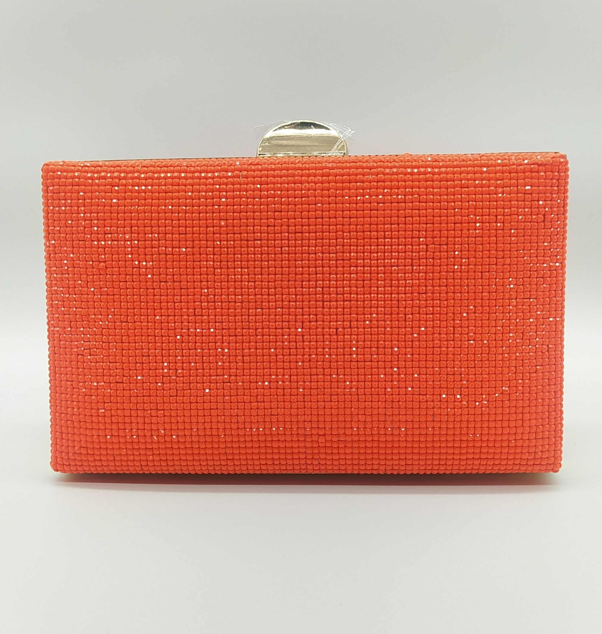 Bolso naranja con brillantes por las dos caras . Con cadena dorada