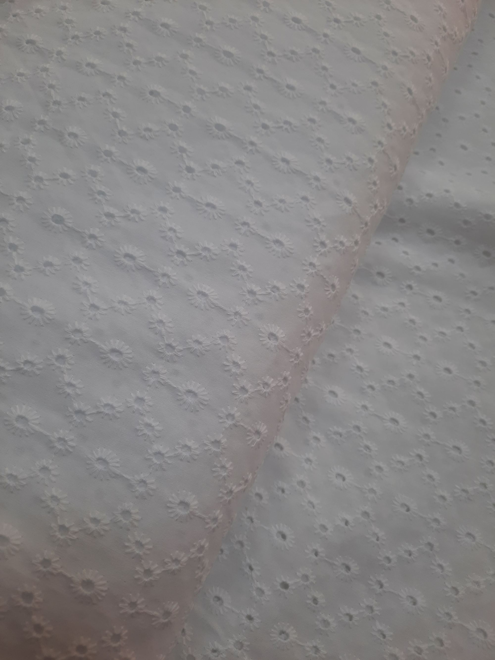 Batista bordada como su nombre bien define ,es un tejido fino de algodón con bordados y perforado,pueden ser blancos o de color.