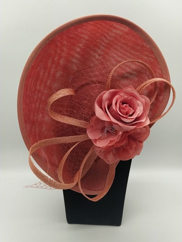 Tocado rosa con flores en el centro . Coc diadema y pinza